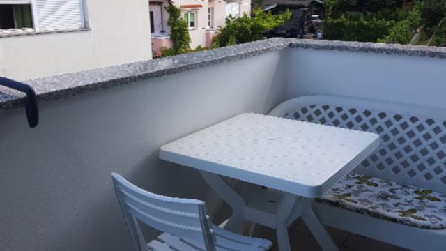 Apartman 3 Apartman 3 nalazi se na prvom katu i nudi pogled na more. Ima jednu spavaću sobu i kupaonicu te kuhinju s kaučem na razvlačenje za dvije manje djece ili jednu odraslu osobu. Kuhinja je opremljena posuđem, zdjelama, priborom za jelo, štednjakom, hladnjakom, mikrovalnom, kuhalom za vodu i aparatom za kavu. Apartman ima dva balkona, klima uređaj, TV/SAT i Wi-Fi. Posteljina i ručnici uključeni su u cijenu, a parkirno mjesto je osigurano.